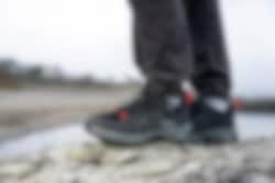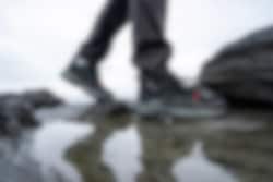 Skoens overdel er lavet af en kombination af tekstil og robust 1,4-1,6 mm splitlæder, som sikrer en god holdbarhed. Det lave ankeldesign giver større bevægelsesfrihed, mens den medium fleksibilitet giver god støtte i terrænet, sammenlignet med for eksempel sneakers, der har lav fleksibilitet.