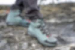 Støvlens overdel er lavet af en blanding af tekstil og slidstærkt 1,4-1,6 mm splitlæder, kendt for sin holdbarhed, der giver beskyttelse selv under barske forhold. Den mellemhøje konstruktion giver ekstra ankelstøtte.