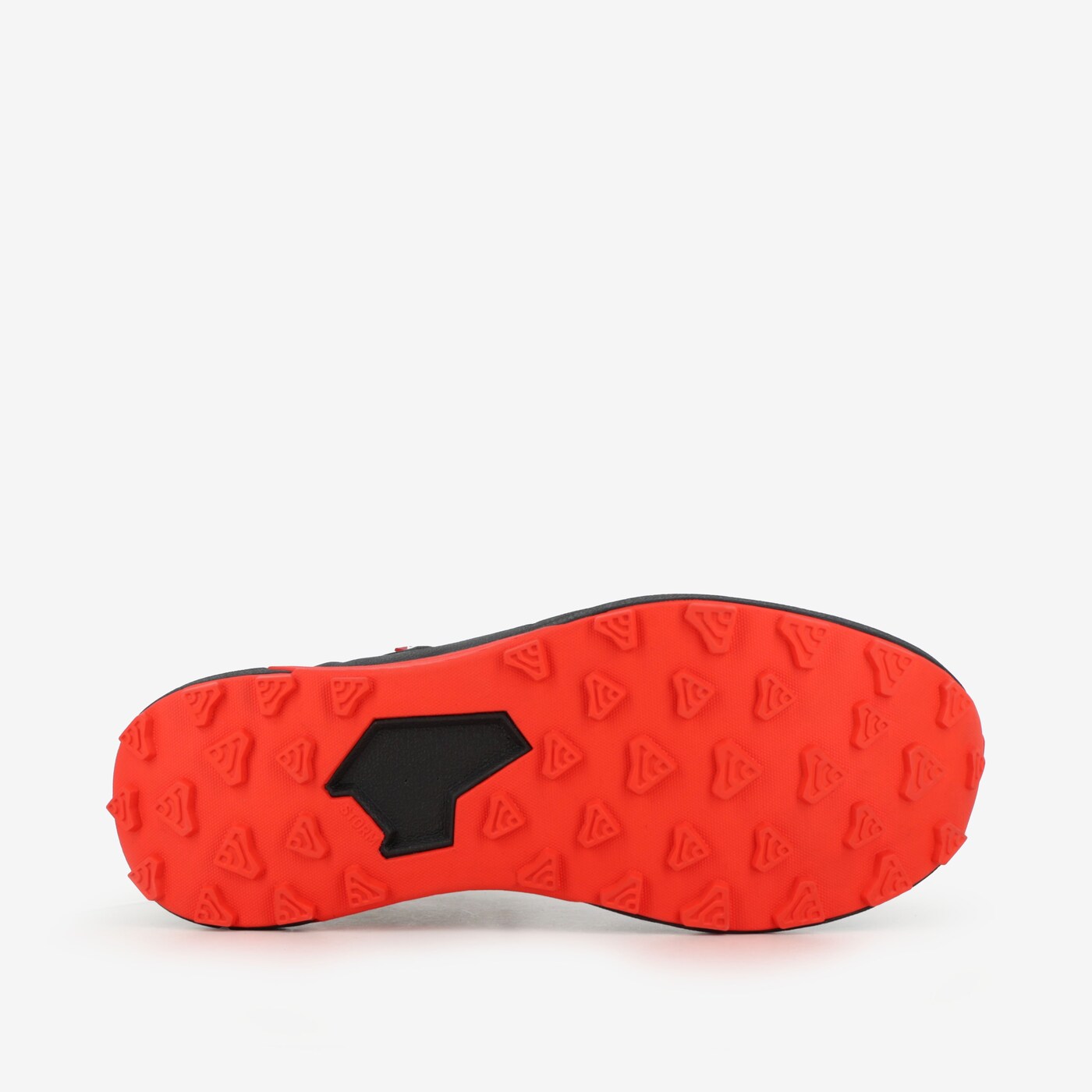Storm-ydersålen er udstyret med aggressive, multidirektionelle knotter, der giver sikkert greb på underlag som mudder, sand, grus og sten. En stabiliserende gummiforsætning rundt om mellemfoden bidrager samtidig til øget torsionsstabilitet og bedre balance i ujævnt terræn.