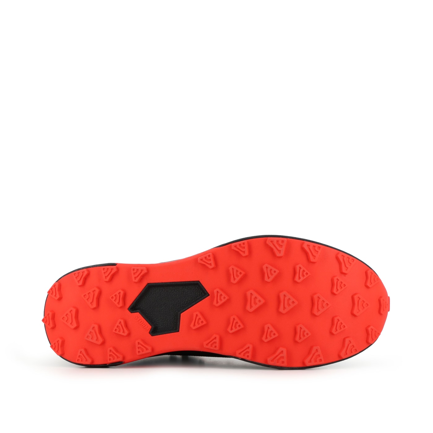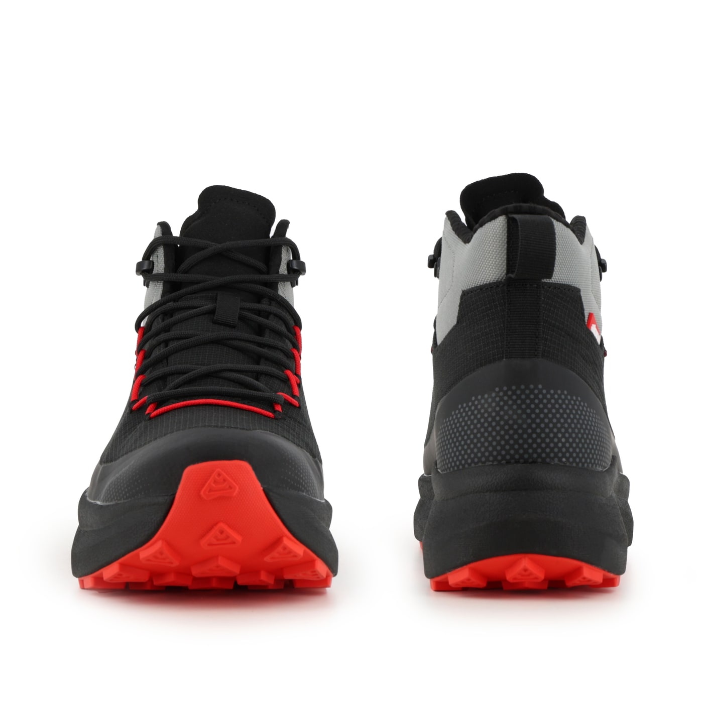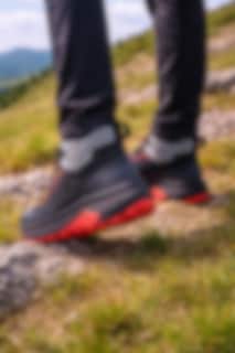 Det første man mærker ved brug er stabiliteten. Storm-ydersålen med 4 mm knotter giver pålideligt greb på underlag som grus, jord, mudder og sten. Med en hælhøjdeforskel på 8 mm og en let rockerform ruller skridtet naturligt fra hæl til tå.