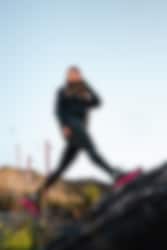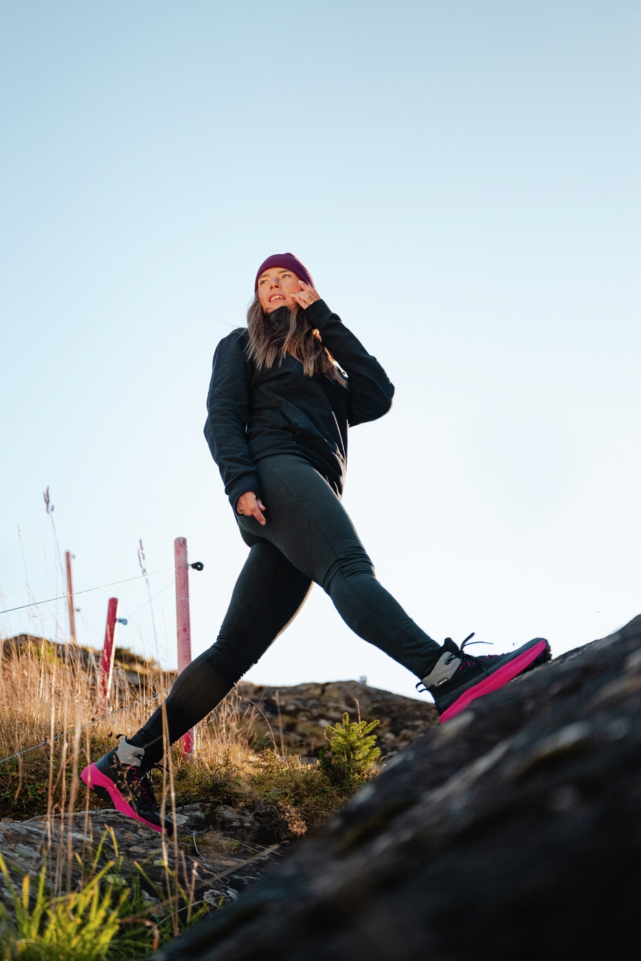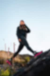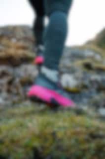 Det første som merkes i bruk er stabiliteten. Storm-yttersålen med 4 mm knotter gir pålitelig grep på underlag som grus, jord, gjørme og stein. Med en dropp på 8 mm og en lett rockerform ruller steget naturlig fra hæl til tå.
